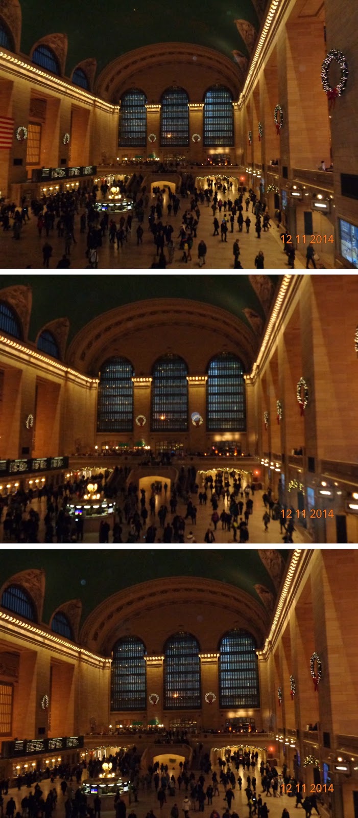 To help rule out any weird theories that skeptics may advance to try to explain this remarkable photo, let me give the photo set below. All three photos were taken within about 50 seconds of each other. The first photo was taken just before the photo above. The second is the photo above. The third photo was taken a few seconds after the photo above. Click on the image to see it in its full resolution.Note that the orb only appears behind the Christmas wreath in the second of the three photos, making it impossible to explain the orb's appearance as due to some special light situation that occurred at this time in Grand Central Station.