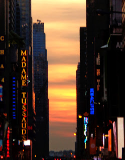 This is a rare "off-topic" post, as this photo is not paranormal-looking. Twice a year the sunset aligns with the streets of Manhattan, in what is called Manhattanhenge. Below is a photo of how it looks.