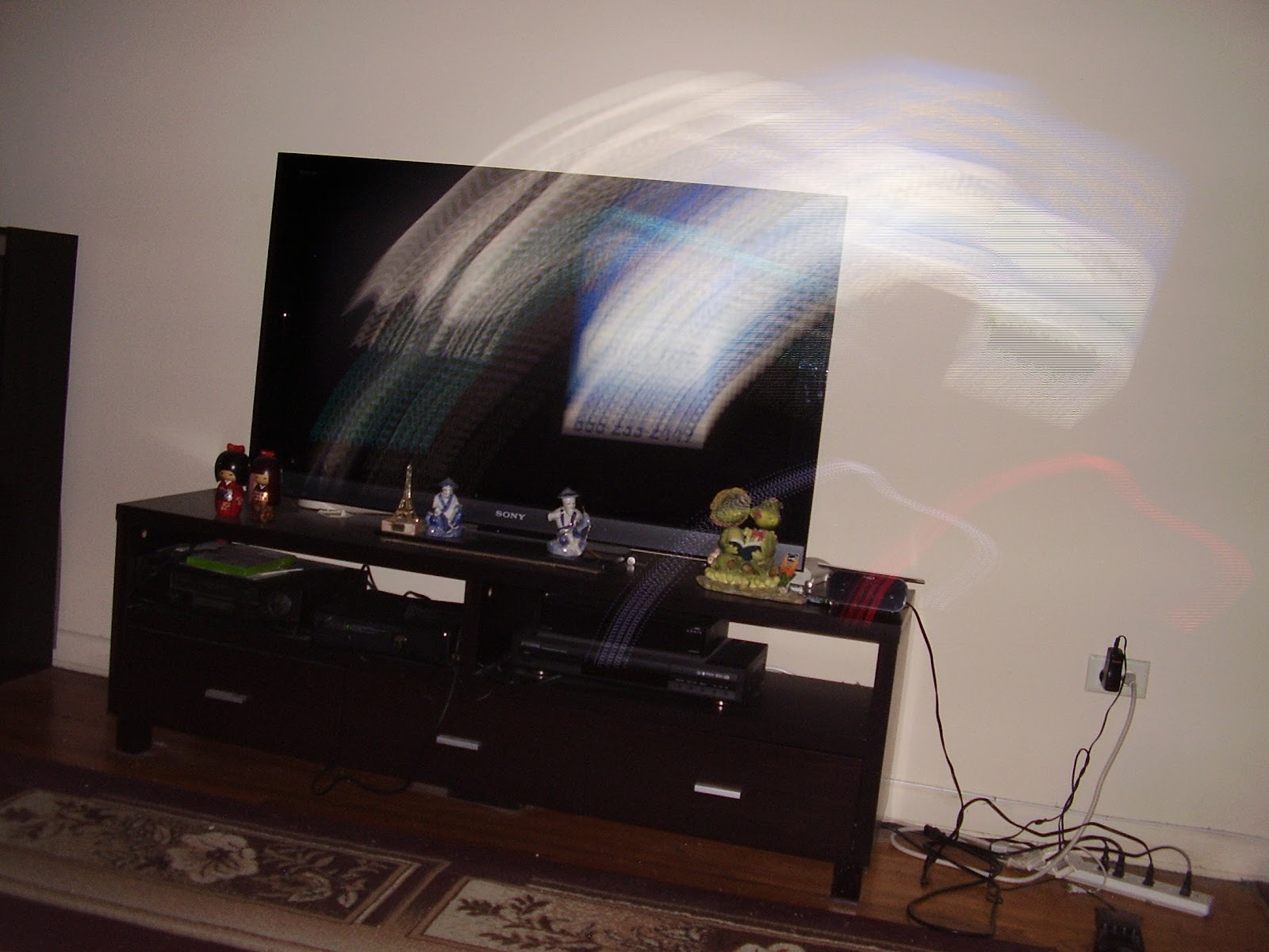 The first one shows a yellow rectangle from the TV levitating way over to the right.