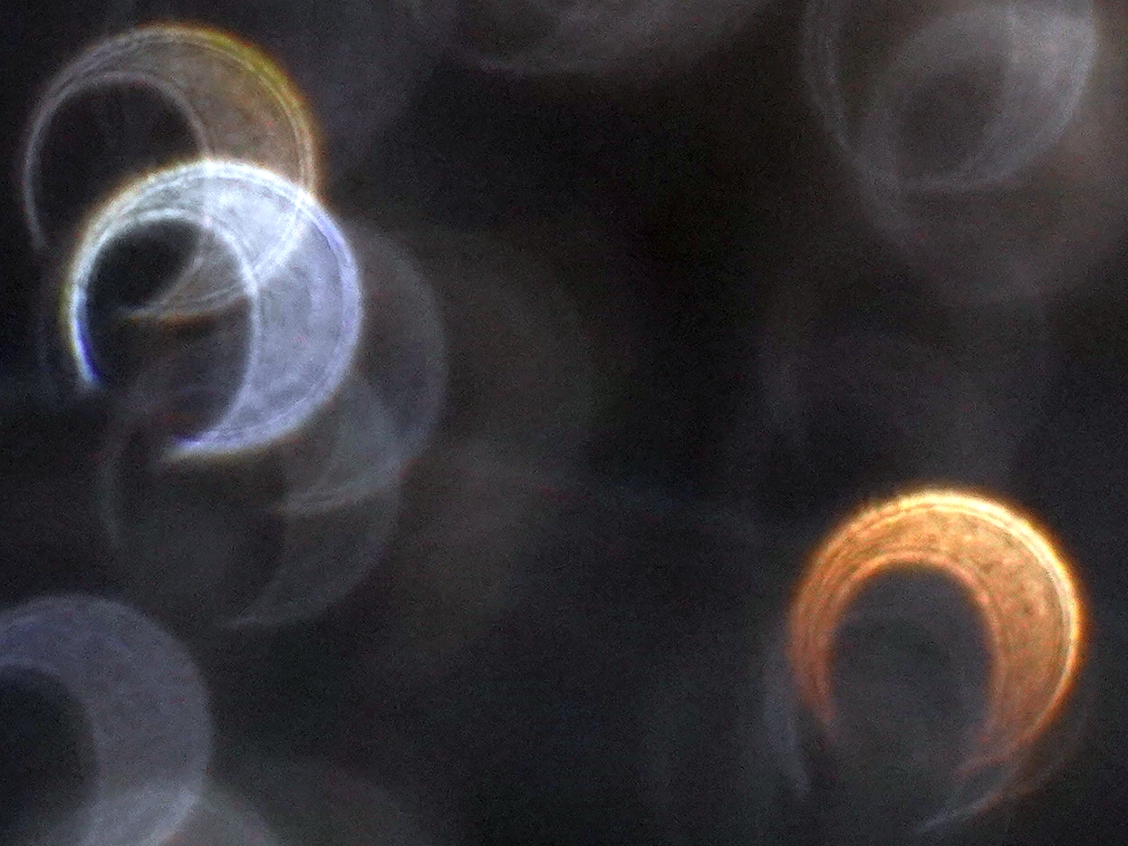 I took the photos below while photographing only ordinary drops of pure, clean water falling in front of a black featureless background. On this day I got more than 1500 photos that each showed multiple orbs with a large oval hole inside them, always on the left or middle of the orb. Altogether I photographed on this day more than 5000 such orbs with these large oval holes. Below are a few dozen examples.