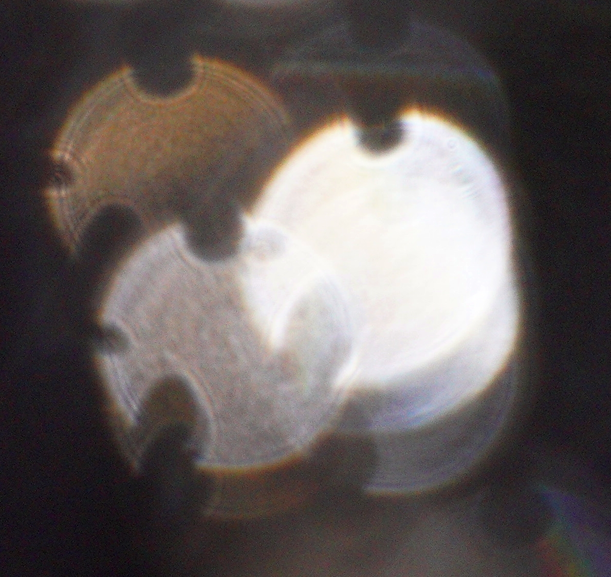 I took the photos below while photographing only ordinary drops of pure, clean water falling in front of a black featureless background. We see a three-part orb pattern that persisted through almost all of 500+ consecutive photos.